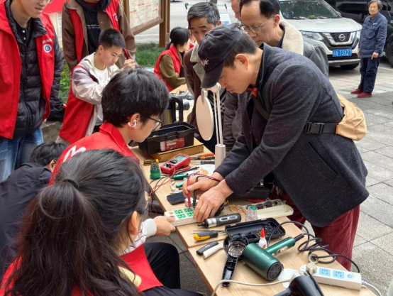 便民家电维修服务成为本次活动的主要亮点。志愿者们充分发挥专业所长,为社区居民提供电风扇、电水壶等小型家电的故障检测与维修服务。活动期间,共收到故障家电19件,成功修复16件,修复率超过80%。许多居民带着损坏已久的小家电前来求助,在志愿者的巧手下,一件件家电“重获新生”,赢得了大家的一致好评。